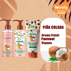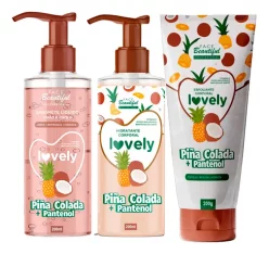 Kit Vegano Lovely Pina Colada e Pantenol: Hidratande+ Gel Facial e Corporal+ Esfoliante Corporal