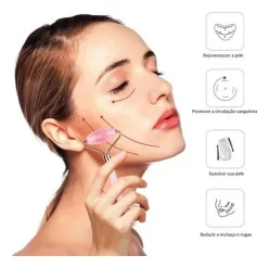 Duo Lifting Facial: Rolo Pedra de Jade Branca + Placa Gua Sha